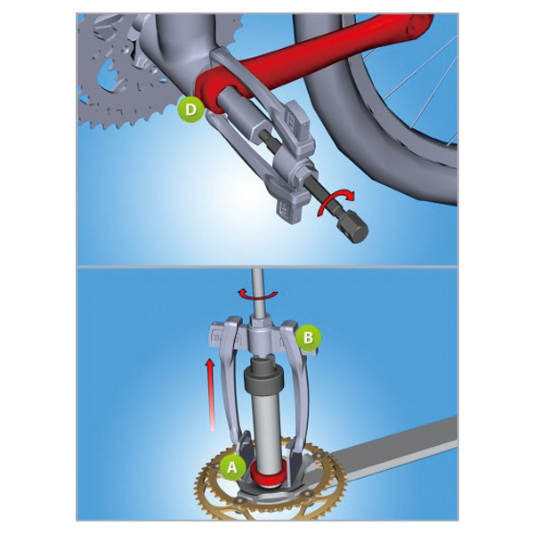カンパウルトラトルク用のベアリング脱着用工具。スタンダードタイプは爪でベアリングを引っ掛け引き抜くツールと、ベアリングを打ち込むツールのセット。フルセットはベアリングだけではなく、クランクの脱着も可能。【スタンダード】L:75 D:40~75重量:500g