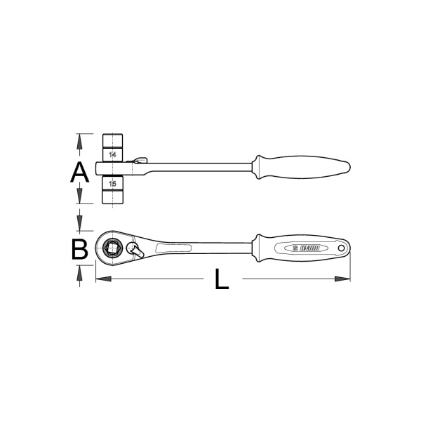 14mmと15mmのソケットレンチをセットにしたクランクのフィキシングボルト 作業やハブの分解作業に便利なツール。socket:14 X 15L:260A:71B:35重量:380g