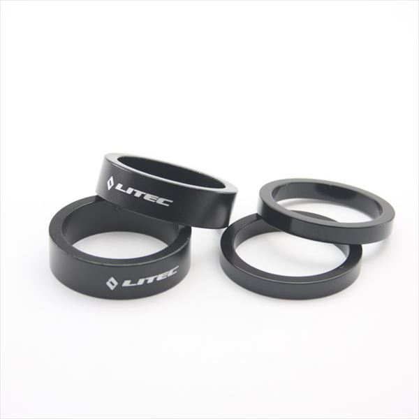 LITEC ロゴをさりげなくあしらったアルミ製コラムスペーサー。厚さ10mmが2個、厚さ5mmが2個の計4個セット。適用車種別:MTB / ロード素材:アルミニウム重量:29g(10mmx2.5mmx2)