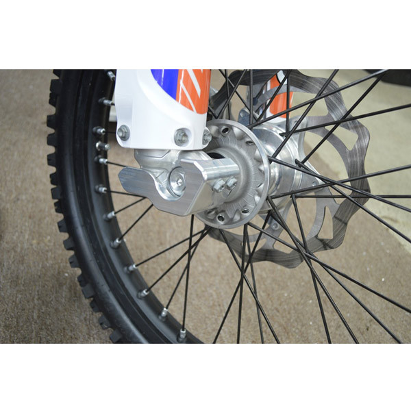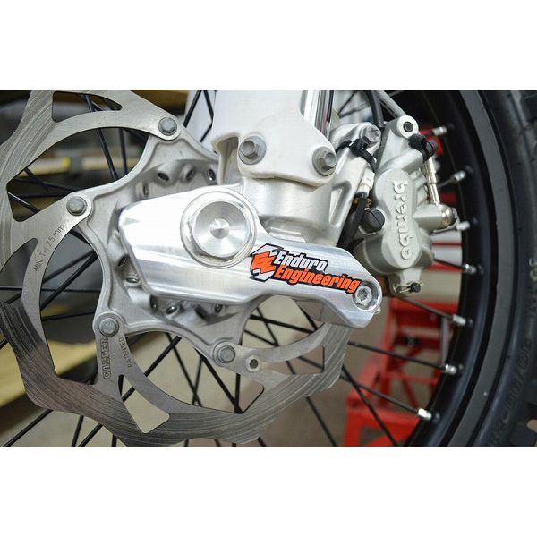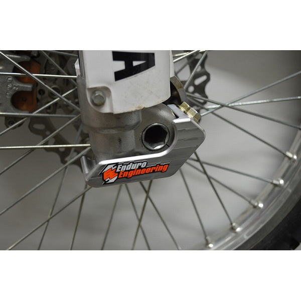 岩や飛び石などによるフロントフォークのボトムブラケットの破損を防ぐ、ビレットアルミ製ガード。