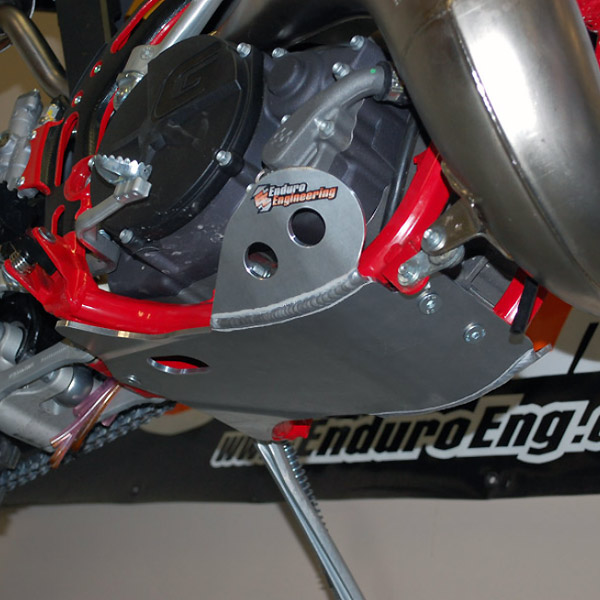 フレーム、エンジン下部を飛び石や障害物から強固にガード。深いわだちや石の多いガレ場などの走行時に不意のトラブルからエンジンを守る。