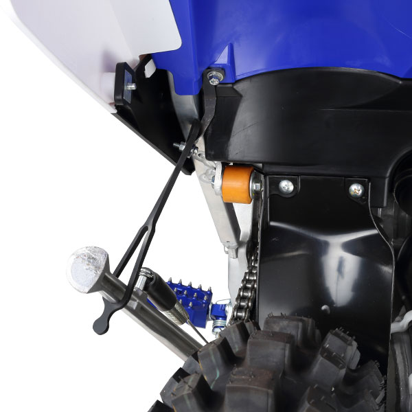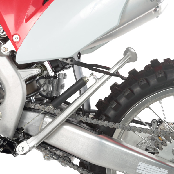 ハードなライディングによるサイドスタンドのバタつきを防止する為のフック。固定することでバタつきや振動によるサイドスタンド取り付け部分の摩耗を軽減。ラバー製フックと各車両専用設計されたスチール製ステー、ボルト/ワッシャーが付属。