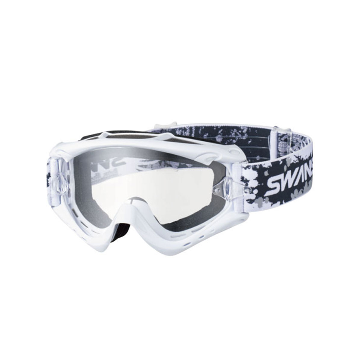 広い視界と高いフィット感を併せ持つSWANSダートゴーグルのミドルモデル。スタイリッシュなデザインでフルフェイスにもよく似合います。クリアレンズ搭載のベーシックモデル。別売りのティアオフレンズ対応。