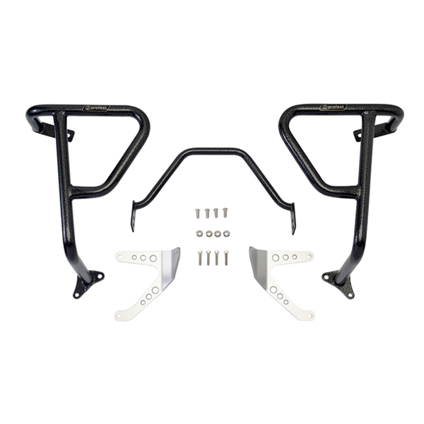 ・フロントバーは一般的なレイアウトではカウルを覆うように配されますが、プロフェストではカウル下部に配置。必要十分なガード機能を保ちつつ、スタイリッシュに仕上げられた車両本来のデザインを損なわない設計です。