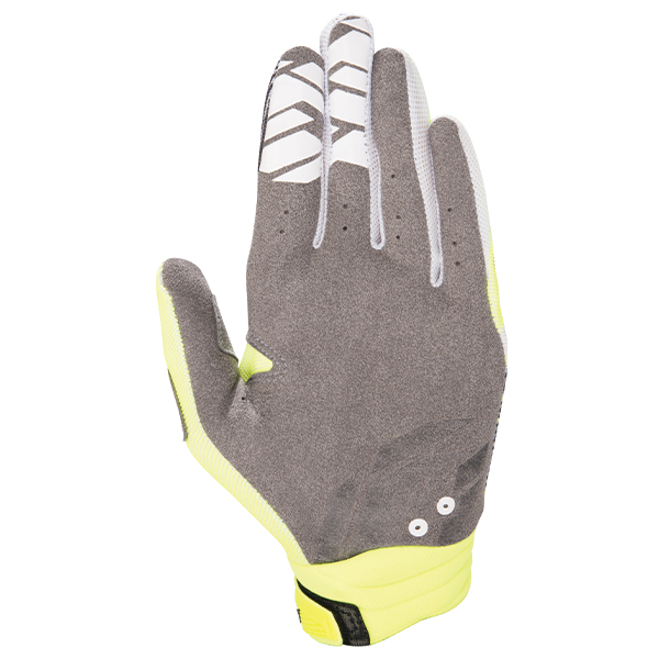・掌部分をシングルピースのクラリーノ製とした構造で材料を減らし、グリップとバイクのレバー操作における繊細さを向上。