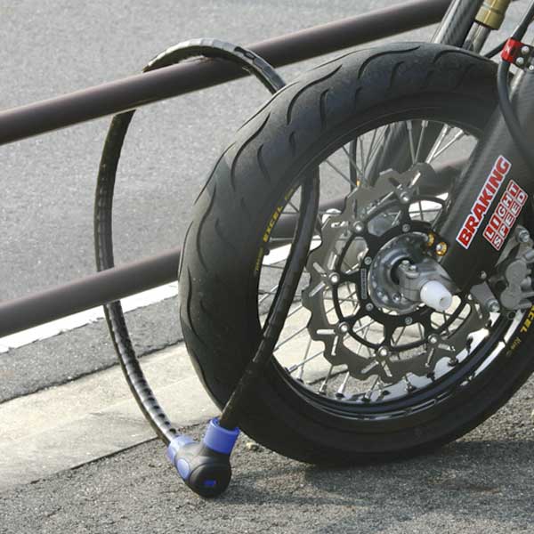 強化スチールワイヤーにスチールリンクを被せた2重構造の頑丈なケーブルに、SXPチェーンロック譲りのシリンダーを採用。25mmの大径ワイヤーが、しっかりと愛車をガード。コストパフォーマンスにも優れたスタンダードモデル。使用状況に応じて1000mmと1500mmの2種をラインナップ。1500mmタイプは固定対象まで距離がある場合や、2台の車輌を一緒に施錠する場合にも使いやすい。暗い場所で鍵穴を見つけるのに便利なLEDライト付キーを標準装備。
