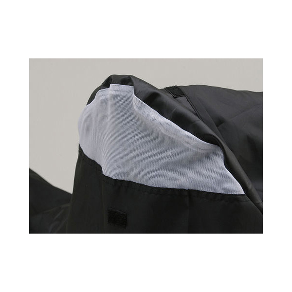 後ろからカバーの裾を絞ることでめくれを防止します。