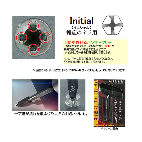 ・溝が舐めてしまった六角穴付ネジ対応のビット付属