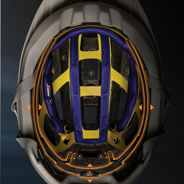 ヘルメット内部にゲージを埋め込み高い強度を確保。