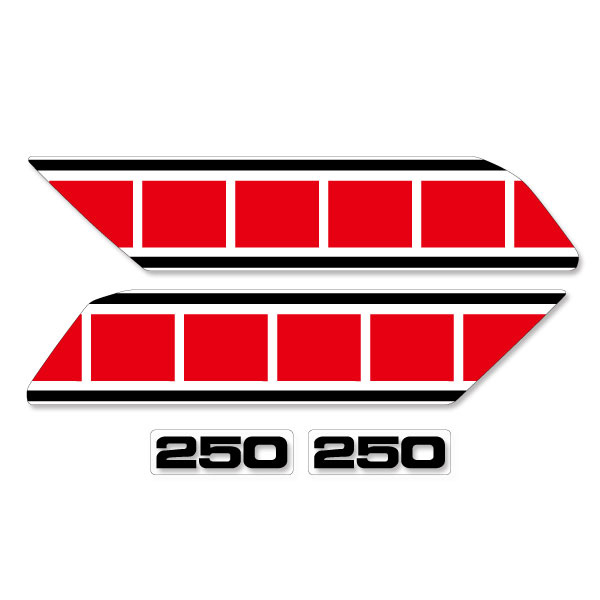 WR250R/X レトロ外装キット用のカスタムオーダーデカールキット。タンク用ストロボラインとサイドカバー部の250ロゴの左右1セット