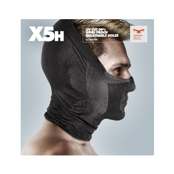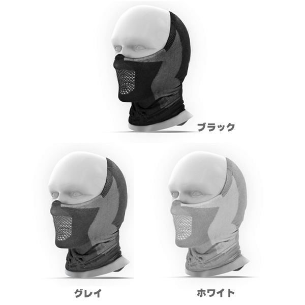 口元から耳、頭頂部分まで覆うハーフバラクラバ(目出し帽)タイプのマスクです。