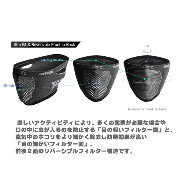 X5は首までの長さがありますが、X5sは顎までの長さのマスクです。暖かくなってきた春先から活躍します。