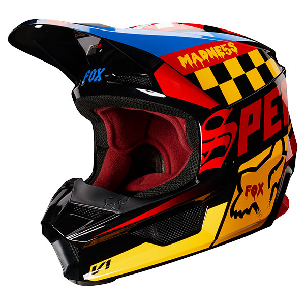 アダルトモデルの機能はそのまま、子供の骨格に合わせて設計。FOXが特許取得する強力マグネット着脱式バイザー「MVRS(マグネティック・バイザー・リリース・システム)」を搭載し、クラッシュ時にバイザーが外れることで、衝撃を分散してダメージを軽減する。吸気/排気口を装備し、最高のベンチレーション性能を実現。