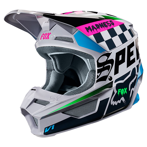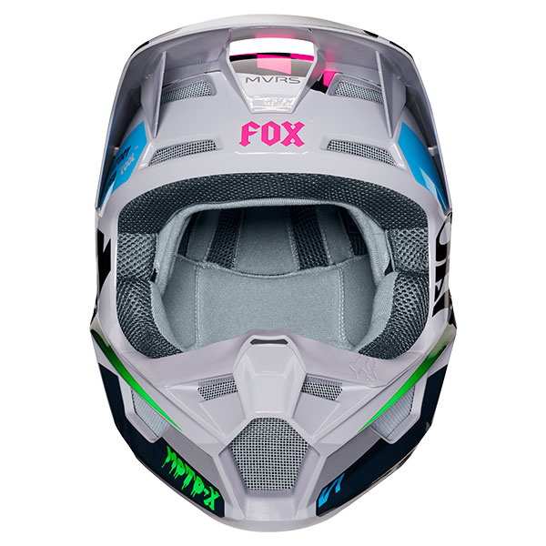 アダルトモデルの機能はそのまま、子供の骨格に合わせて設計。FOXが特許取得する強力マグネット着脱式バイザー「MVRS(マグネティック・バイザー・リリース・システム)」を搭載し、クラッシュ時にバイザーが外れることで、衝撃を分散してダメージを軽減する。吸気/排気口を装備し、最高のベンチレーション性能を実現。
