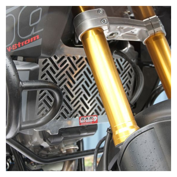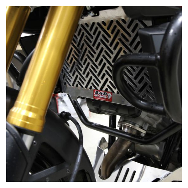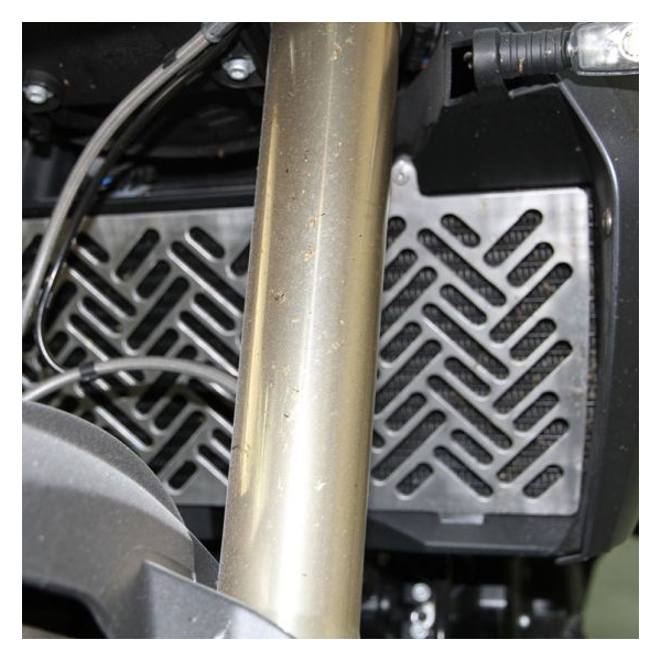 機械加工された4mm/5083アルミニウム板から作られたストーンラジエータガード。分厚いボディは優れた強度とプロテクションを発揮し、大きな破片から小石まで幅広くブロック。基本的な工具使用のみで簡単取り付け。装着に必要なステンレスクランプとボルトが付属。