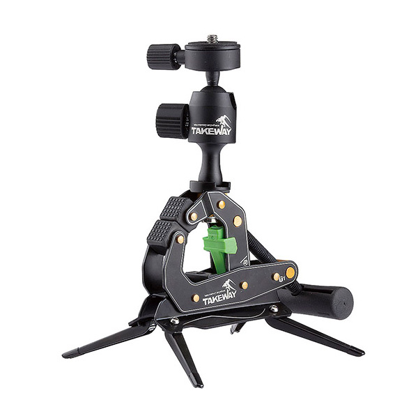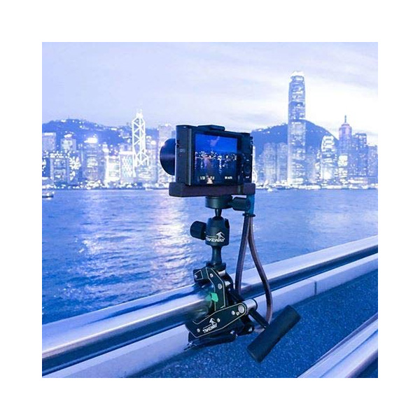 強力なクランプにボール雲台と三脚が装備されたカメラアクセサリーです。