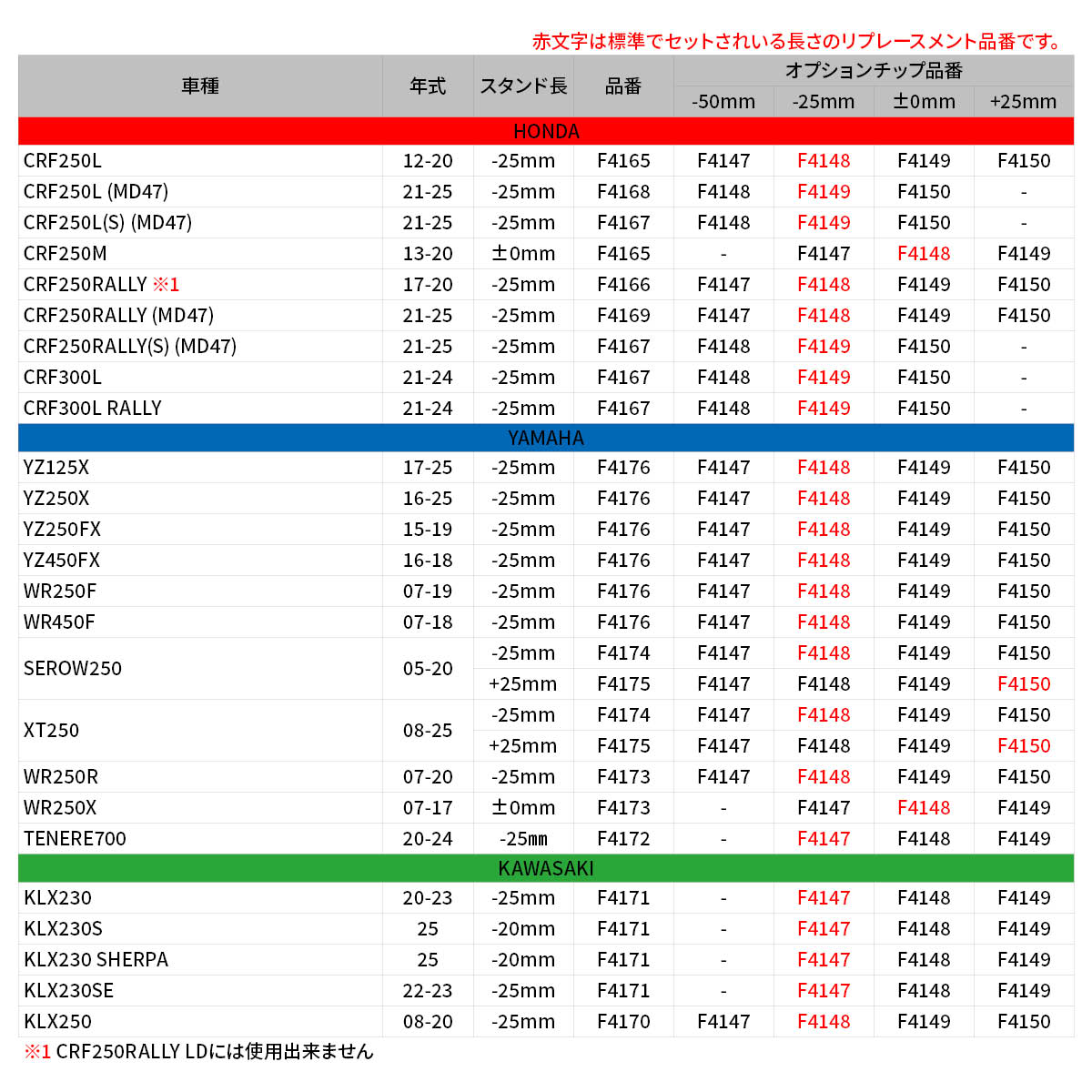 23年式crf250lsに取付け。 以前にzetaアルミキックスタンドを購入し取付けた。標準では80mmのチップが付いていたが少し短く、ちょっとした傾斜地に停めようとすると転倒させる恐れがあり100mmを取付けた。丁度良い感じです。