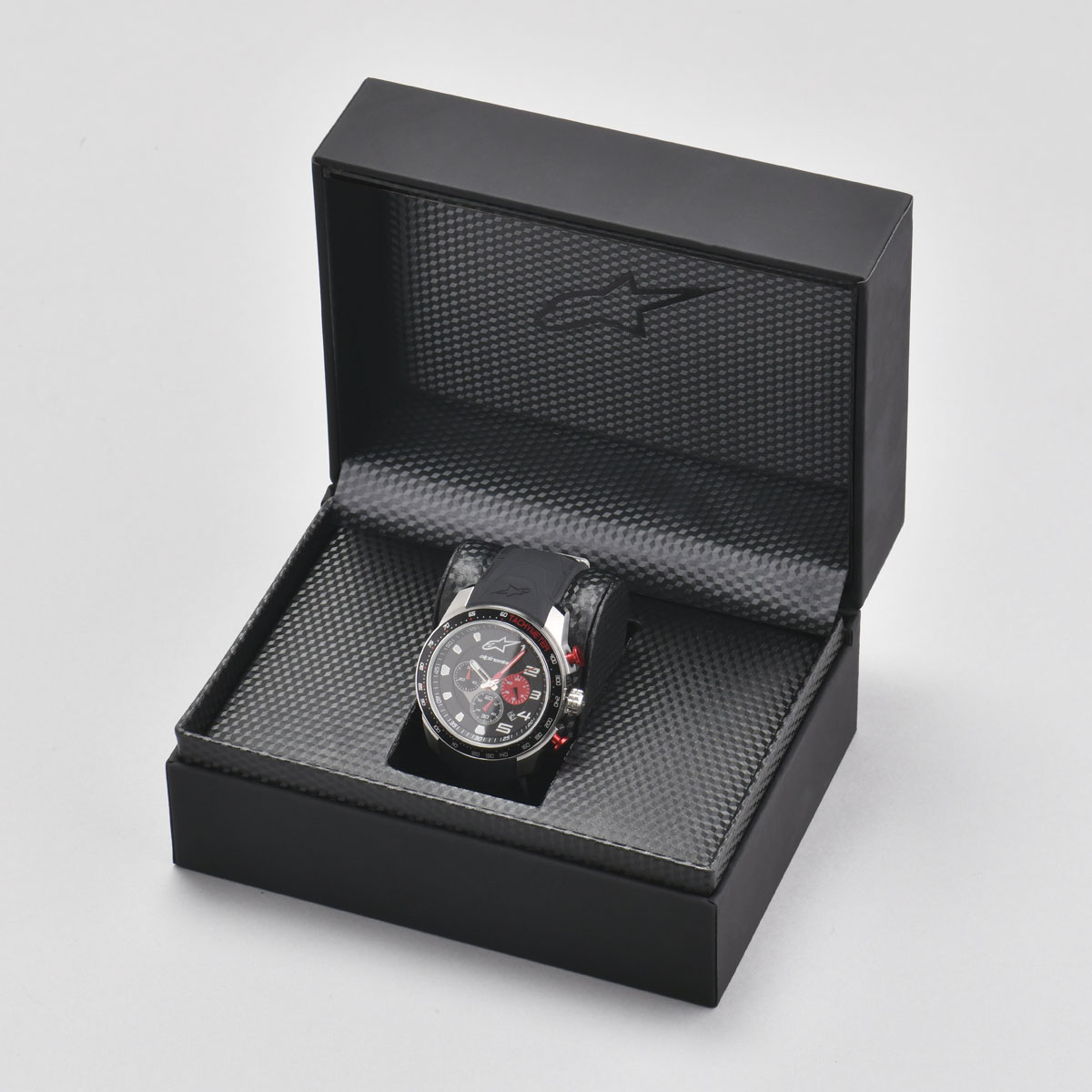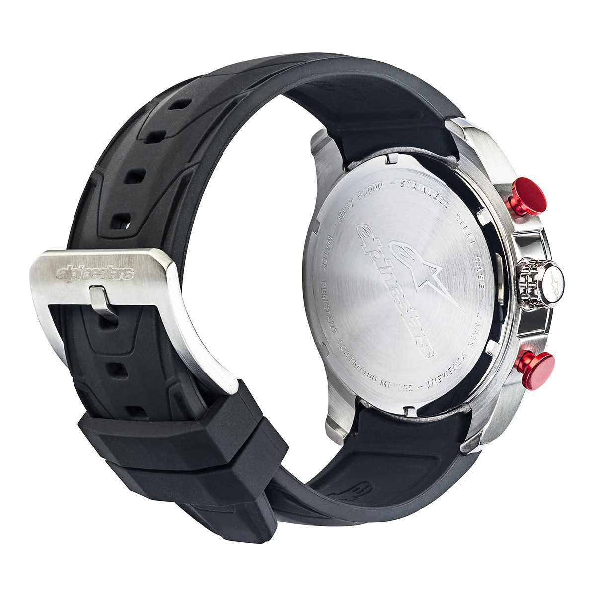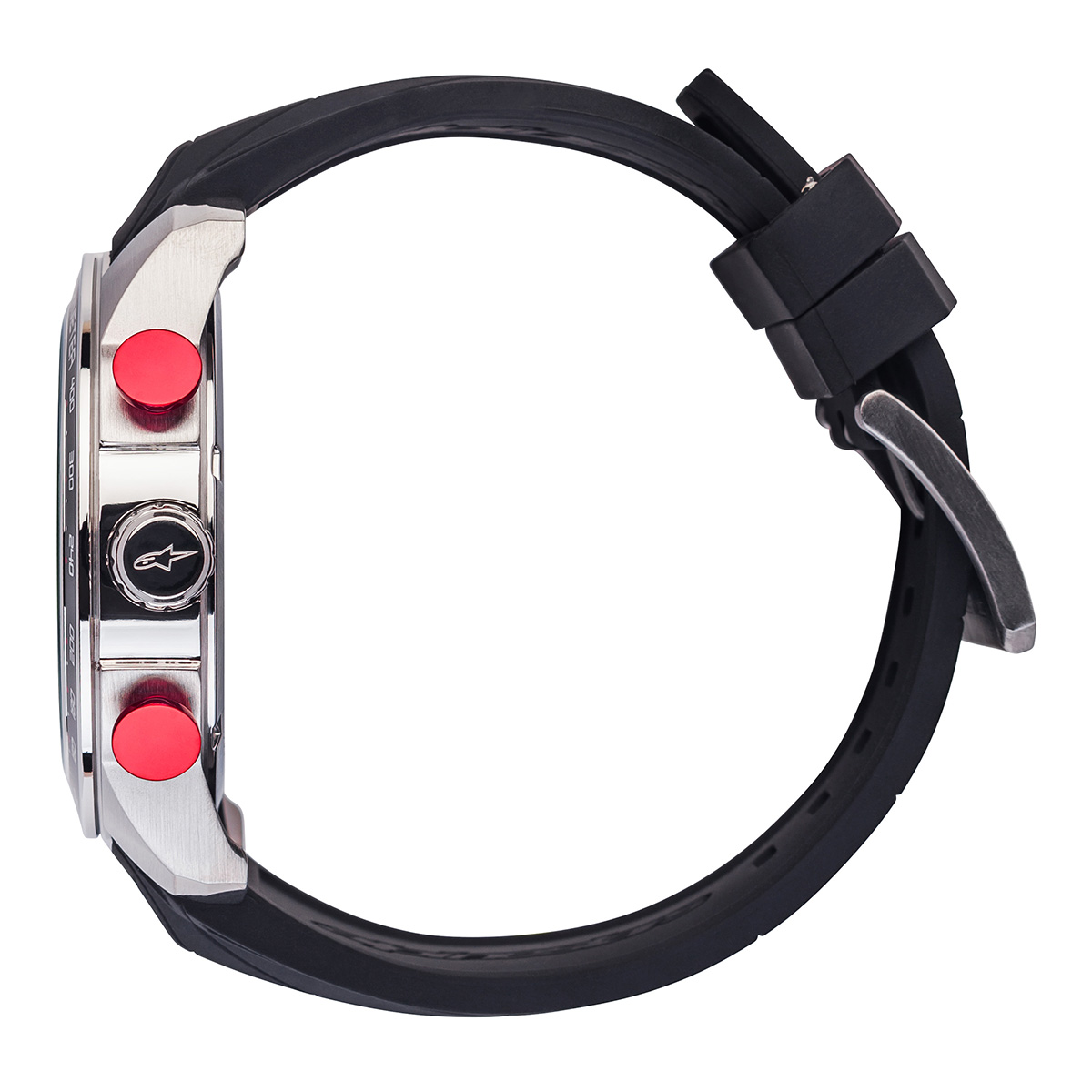アルパインスターズのモータースポーツへの情熱を形にしたプレミアムウォッチ。日本製のマルチファンクションミヨタムーブメントを使用し45mmサイズのステンレススチールケースをおごる。一体型のプレミアムシリコンストラップを採用。100メートル防水。