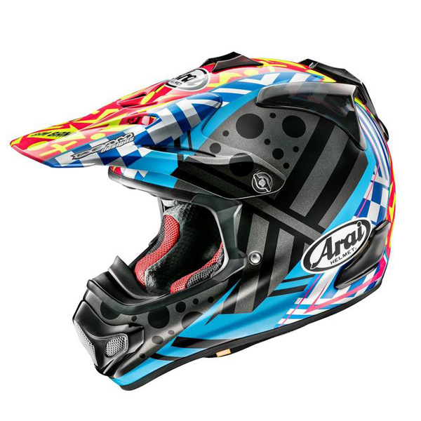 頭を護る安全性能「R75」に代表されるアライの基本理念をすべて取り入れながらも、プロラ イダーをも唸らせ、集中力を妨げない機能を追求し、アグレッシブなスタイリングの本格的オフロード用ヘルメット〈V-クロス4〉をベースとしたアメリカAMAプロライダー「ジャスティン・バーシア」選手の最新レプリカ〈V-クロス4・レプリカ バーシア2〉。アメリカ最高峰モトクロスレースAMAで、爆裂アグレッシブなレーススタイルを魅せるライダーとして観客をワクワクさせるやばいライディングとキレのある走りをアピールする、彼のレース中でもひときわ目立つカラーとポップ調なデザインで、インパクトのあるレプリカモデル。