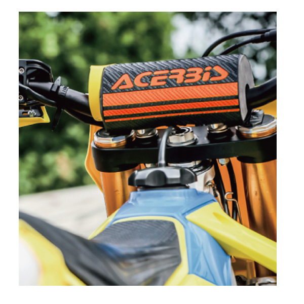 不意の衝撃などのアクシデント時に、ハンドル周りとライダーとの間のクッションになる大型ハンドルバーパッド。ハンドルとポストクランプに装着。高い衝撃吸収性能を持つEVA素材を、高耐久PVC素材でカバー。軽量ながらも80mmと充分な高さがあり、”もしも”のときにしっかりとライダーの胸部や腹部を衝撃から守ります。ファットバー用。