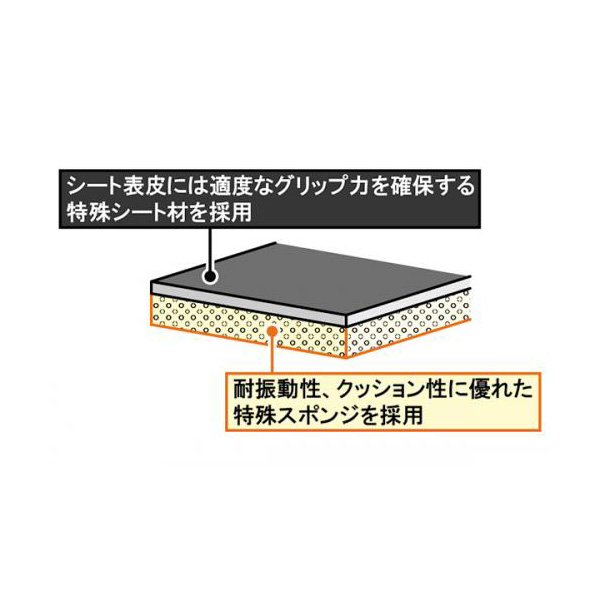 表皮に耐振動性、クッション性に優れた特殊スポンジを貼り付けることで、路面から伝わる振動の軽減と優れたクッション性を兼備えております。