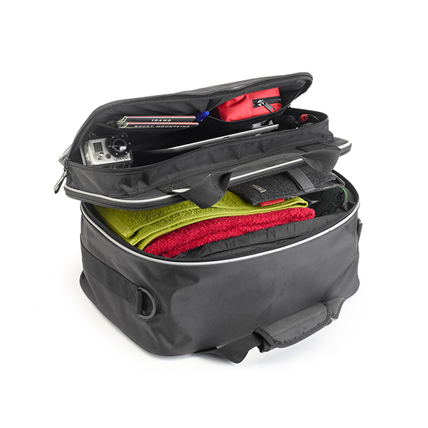専用設計だからスペースを余す事無く活用可能。荷物整理に便利な2気室設計。ハンドルとショルダーベルト付属で持ち運びもらくらく。※ショルダーベルト付属