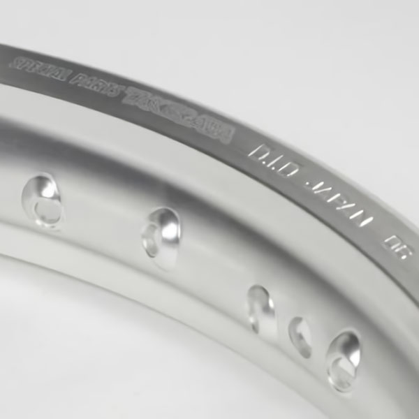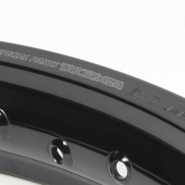 ノーマルスチール製メッキホイールリムからTAKEGAWA製アルミホイールリムに変更する事で、カスタムイメージを高めます。ロゴレーザーマーキング、D.I.D JAPAN刻印入ノーマルホイールリムに対してワイド化。