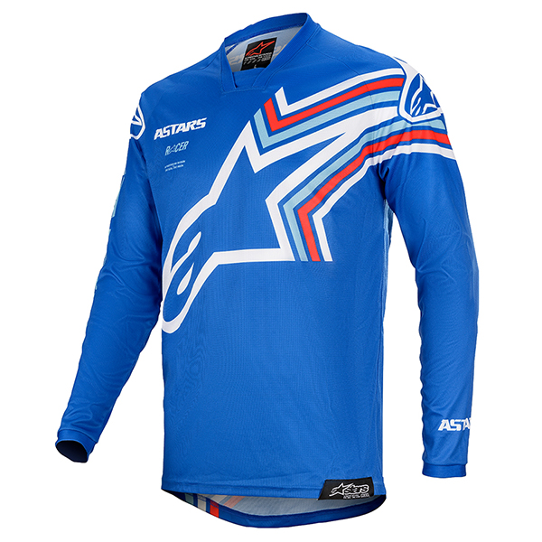 厳しいコンディションでのライディングでもライダーの期待を裏切らない機能を兼ね備えたレーサージャージ。吸湿性、耐久性に優れる超軽量素材を使用。動きやすさやフィット感を向上するために、背中側の裾は長めにカットされ、手首部分にも工夫が施されている。