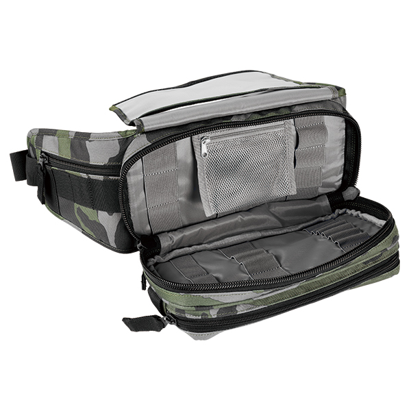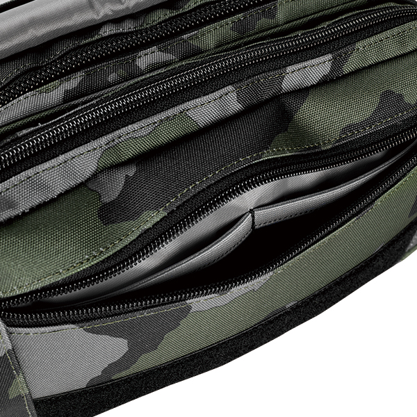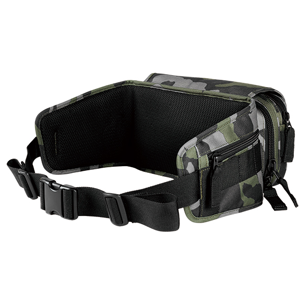 林道ツーリングなどで必要な携帯工具、スペアチューブなどをコンパクトに収納できるウエストバッグ。工具をがっちりホールドするゴムストラップを配置し、持ち運びに最適。