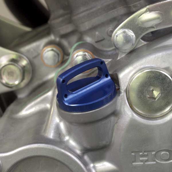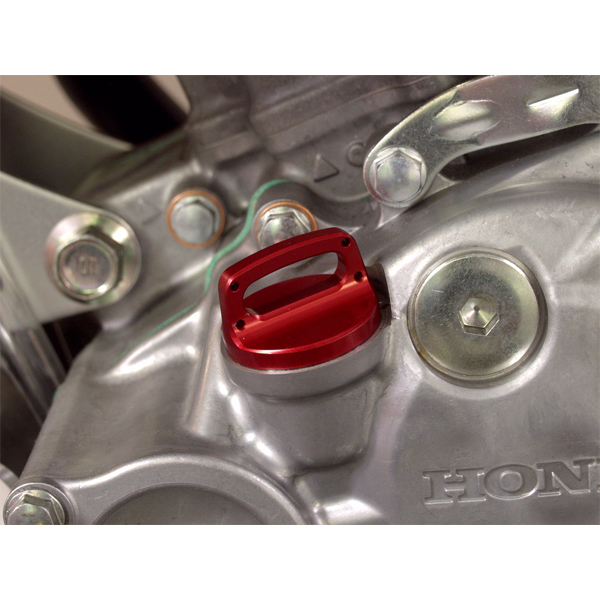 エンジンオイル量の確認が可能なゲージ付。指でねじ込むつまみタイプを採用。Oリング付属。