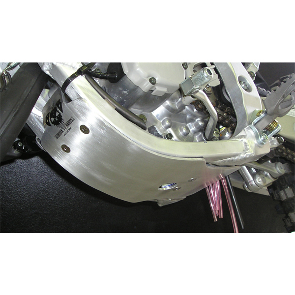 エンジンやフレームの下部を飛び石などから保護する。アルミ製。