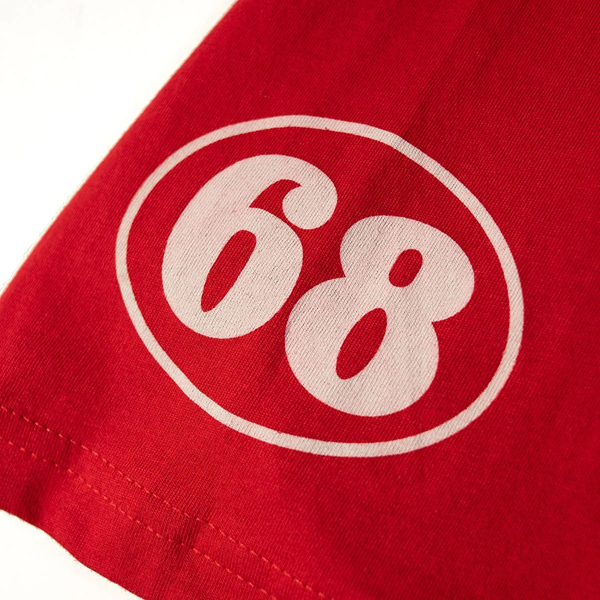 ・軽量な100% コットン(リング精紡)・プレミアムアスレチックフィット・色落ちしにくいプリント仕上げ・Made in USA