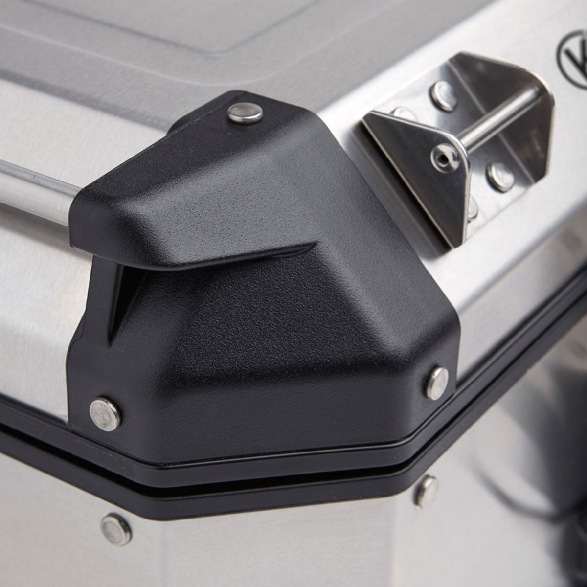 モノキーは世界中のバイカー、スクーターライダーに名の知れたパニアとトップケースのフィッティングシステム。1つのキーでケースの開閉、プレートから脱着可能。軽量、コンパクトな素材を使用した高い剛性の作りのおかげで、ライダーは荒れた道を進む時も安全に走行できる。その秘訣は最大限の接地面をとるように配置された3つのフィッティングポイントによるプレートへ均一な荷重。天候変化、温度変化に強いゴム製スペーサーがケース、プレートへの振動を抑制する効果があるため、長期間の負荷がかかる状況でも安心して使用できるフィッティング力が得られる。