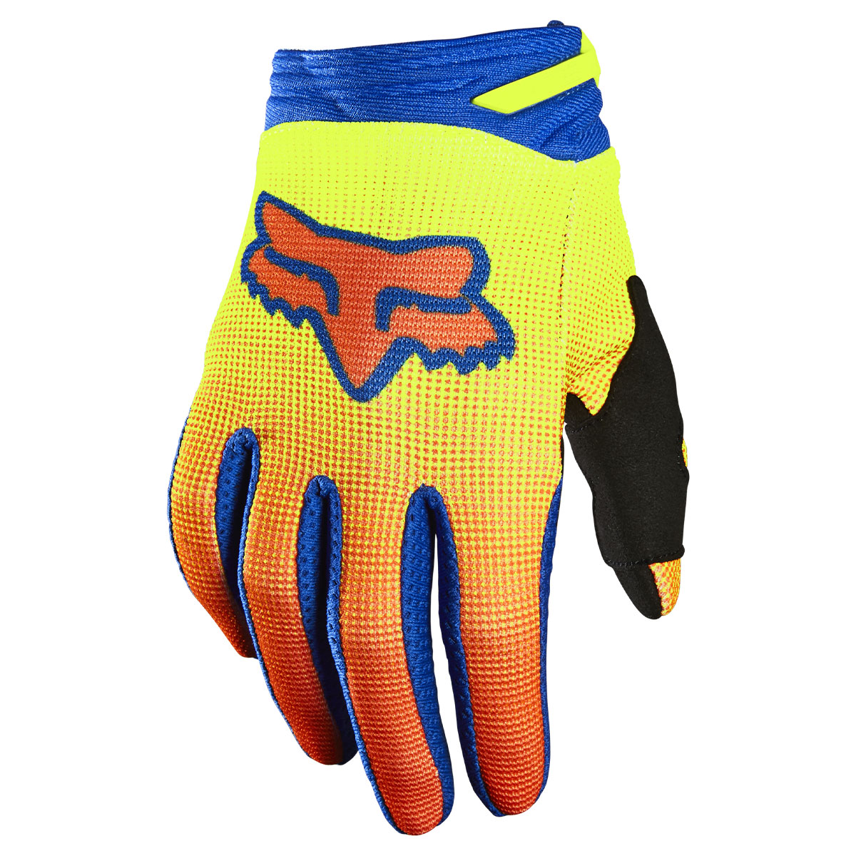子供の手の平に合わせてデザイン。全体にストレッチ性ポリエステル生地を使用し、手のひら部分にはシングルレイヤークラリーノ生地にパッドを配置。指のまち部分はストレッチメッシュ製とし指先には滑りにくいシリコンプリントを施す。