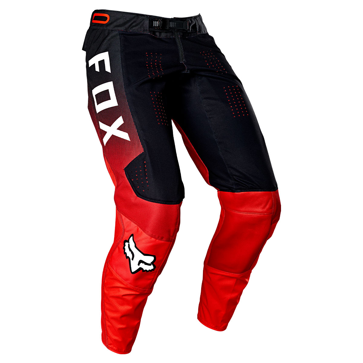 サンプルの検証に数えきれない程の時間を費やし、一段と高いレベルの製品の開発に成功した。FOX独自の4方向にストレッチするTruMotionファブリックを随所に用い、摩耗しやすい個所には900D ポリエステル生地を使用することで高い耐久性を実現。独自の縫製パターンであるRAP(ライダーアタックポジション)を採用した360パンツは、モトクロス特有の激しい動きにも驚くほど柔軟に対応する。