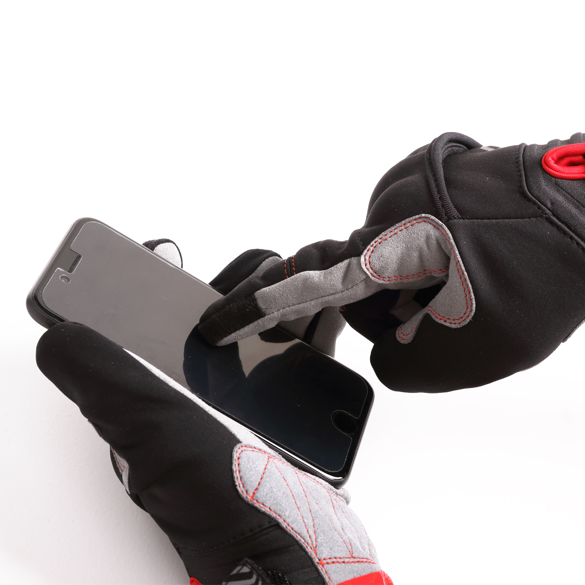 モトクロスグローブのような操作性と、防寒性をあわせもつウィンターライドグローブ– 軽快なフィッテイングとダイレクトな操作性。– 防風/透湿ストレッチのソフトシェル生地がフィット感を高める。– 1枚革で構成された手の平はグリップとの一体感を提供。– 手の甲側は手の動きを妨げないソフトナックルガードを採用。– タッチパネル対応(親指/人差し指)。– 手のひら側は薄型設計でグリップヒーターにもおすすめ。