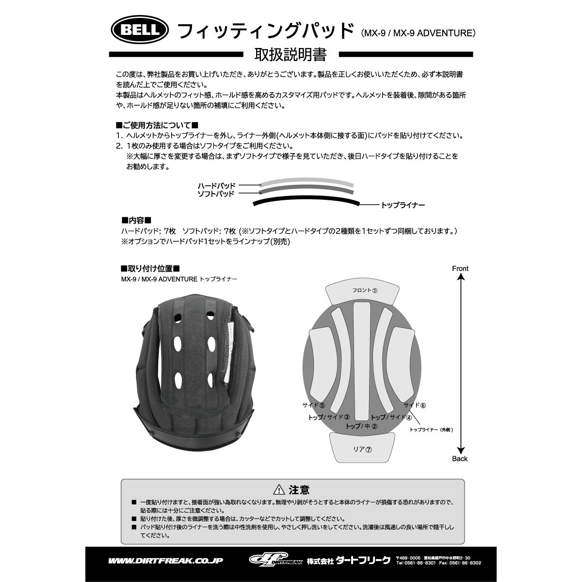 ヘルメットのフィット感、ホールド感を高める専用フィッティングパッド。 国内正規品のMX-9/MX-9ADVに付属するフィッティングパッドと同一です。