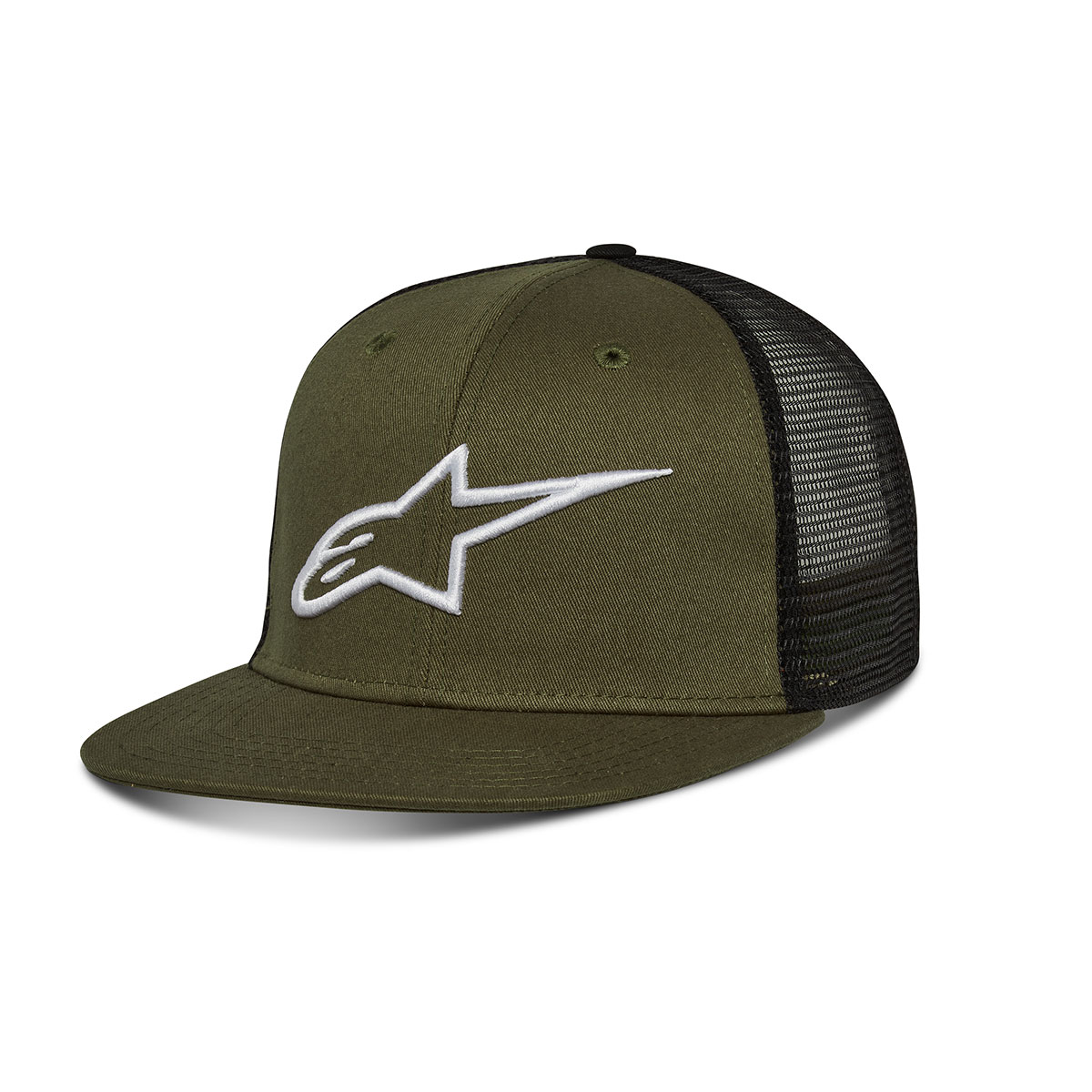 刺繍ロゴをあしらったフラットタイプスナップバックハット。60%コットン・40ポリエステル。