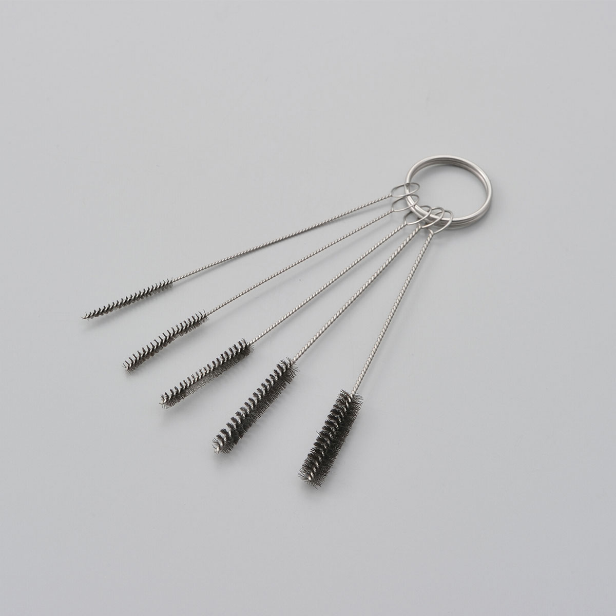 普通のブラシでは届かない、キャブレターの細い穴の内部やネジ山の中等を洗浄するのに最適です。さまざまなサイズの穴に使用可能な5本セット。あえて針金先端にカバーをしない仕様とすることで、より細い穴の洗浄が可能にしました。