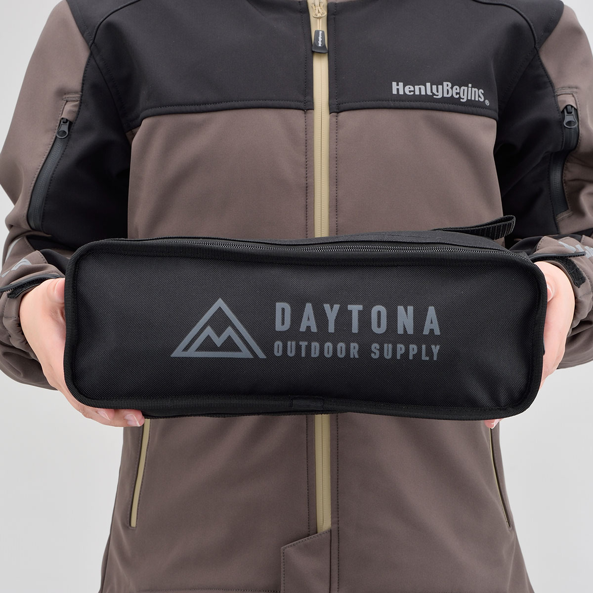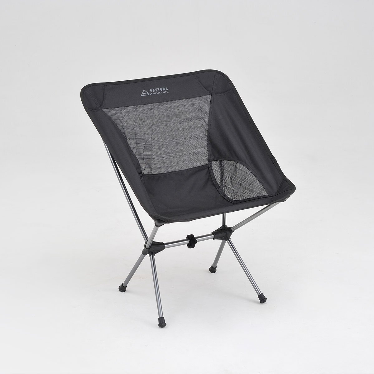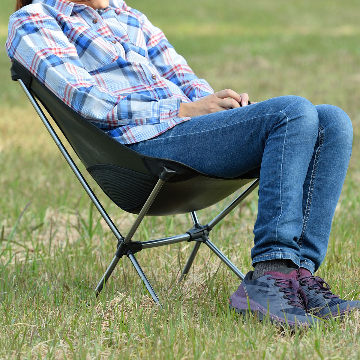 包み込まれるような座り心地のアウトドアチェア。フレームは軽くて丈夫なアルミ製で、コンパクトに収納できるから、荷物を減らしたいキャンプツーリングに最適です。