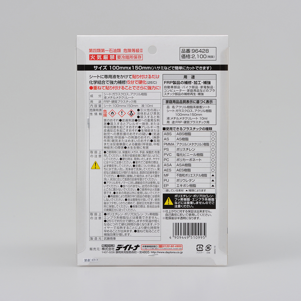 ロングセラー「プラリペア」の進化版!・シートに専用液をかけ、補修箇所に貼り付けるだけで簡単に補修できます。・クロス寸法:100×150mm・専用液:10ml※仕上がりに関する補償は致しかねます。あらかじめご了承ください。
