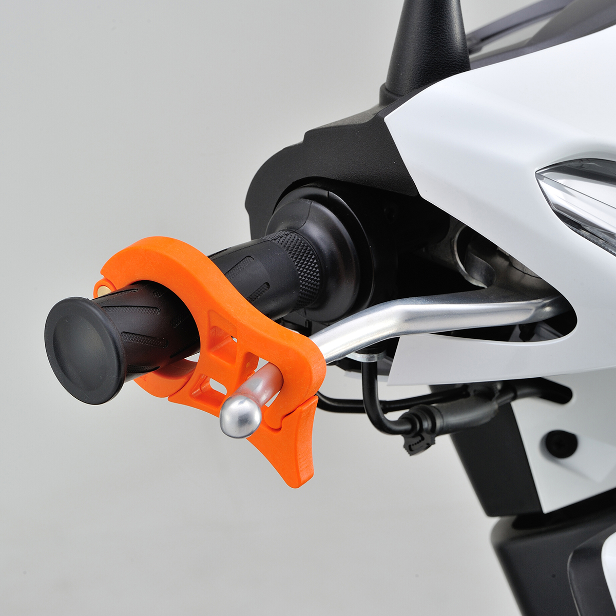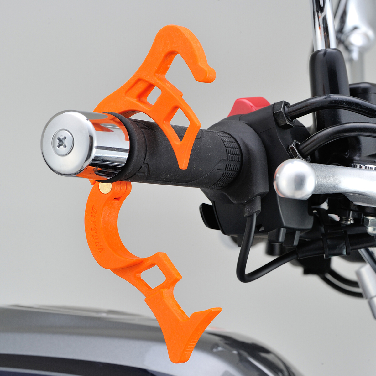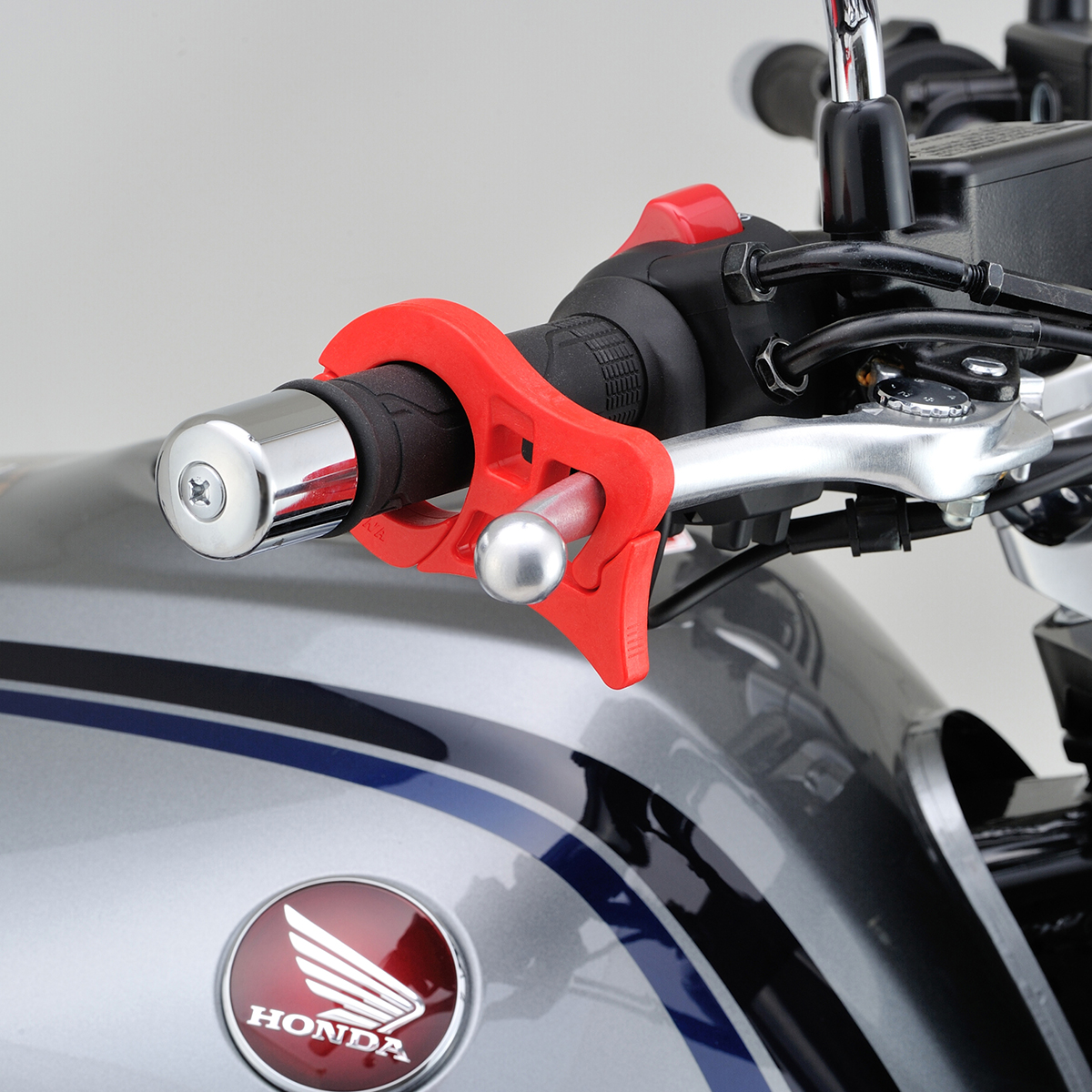 >br>フロントブレーキをかけた状態にしておくことで、傾斜地での駐車時や整備時に不意に車体が動いてバイクが倒れることを防ぐ便利グッズ。本体の穴に南京錠を通せばフロントブレーキロックの脱落防止になります。