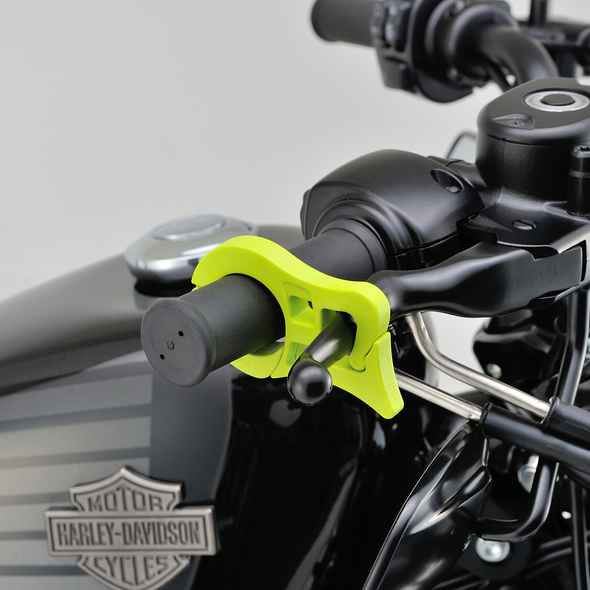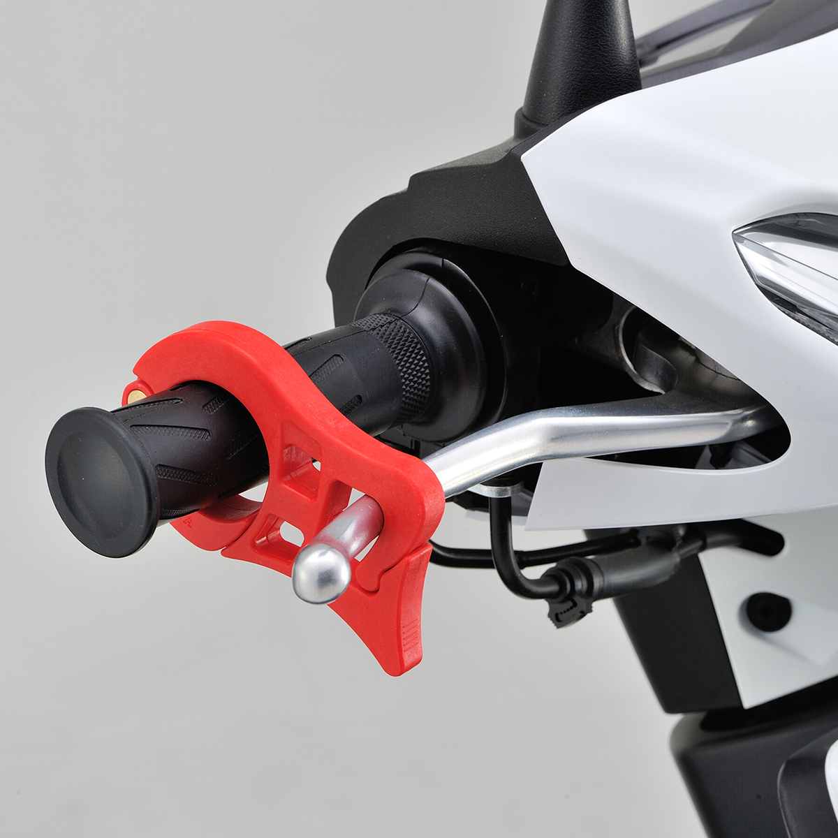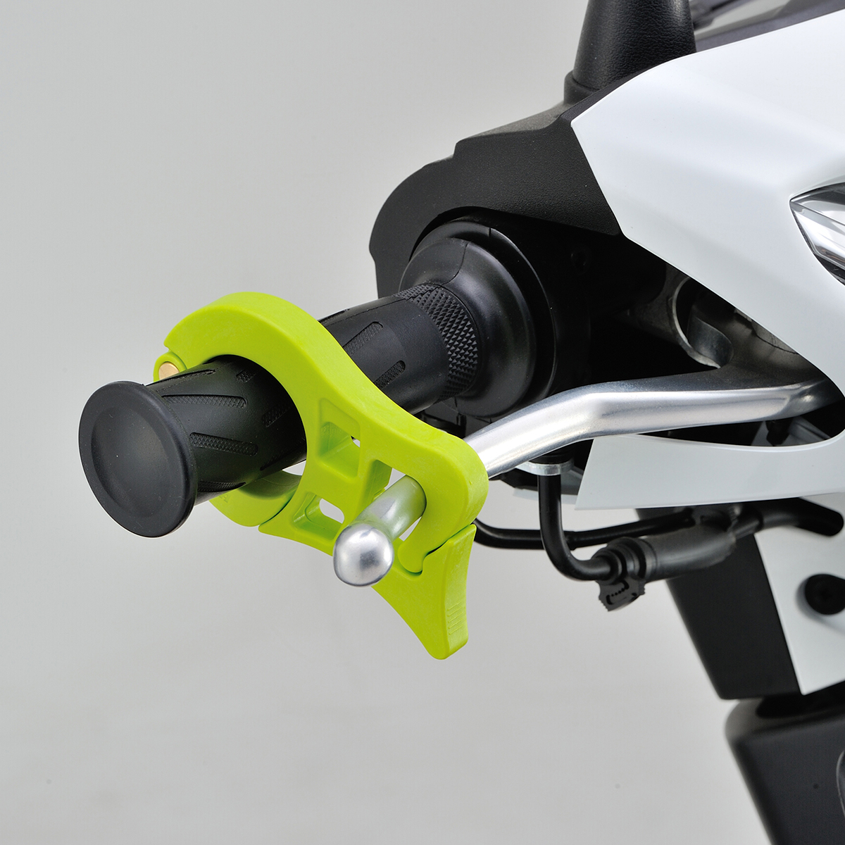>br>フロントブレーキをかけた状態にしておくことで、傾斜地での駐車時や整備時に不意に車体が動いてバイクが倒れることを防ぐ便利グッズ。本体の穴に南京錠を通せばフロントブレーキロックの脱落防止になります。
