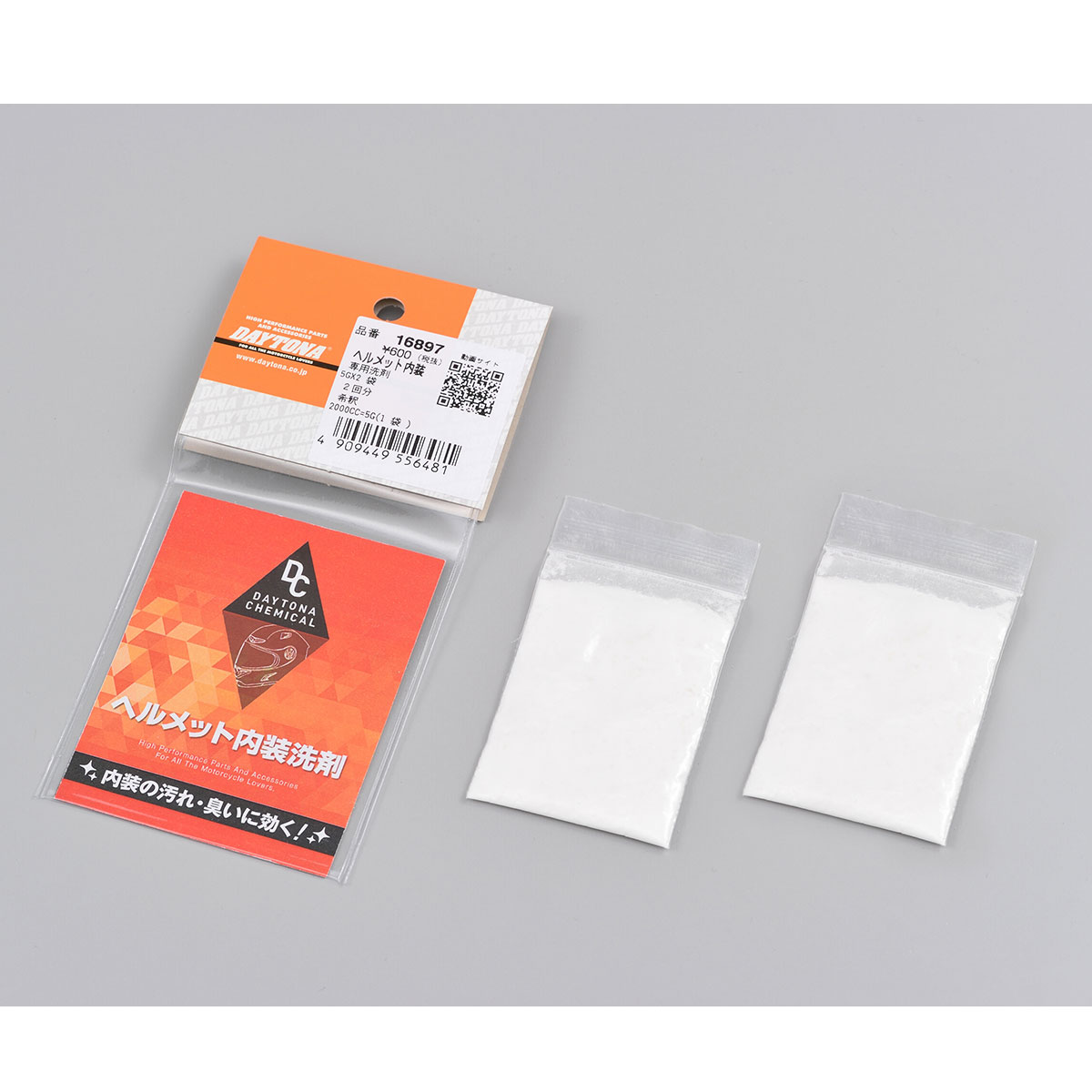 ヘルメット内装の汗や皮脂などのにおいと汚れを落とすために研究された専用洗剤。無香料なので香りが苦手な方にもおすすめです。蛍光増白剤や漂白成分を配合していないため、敏感肌の方にも安心してご使用いただけます。2回分セット。(5g×2)