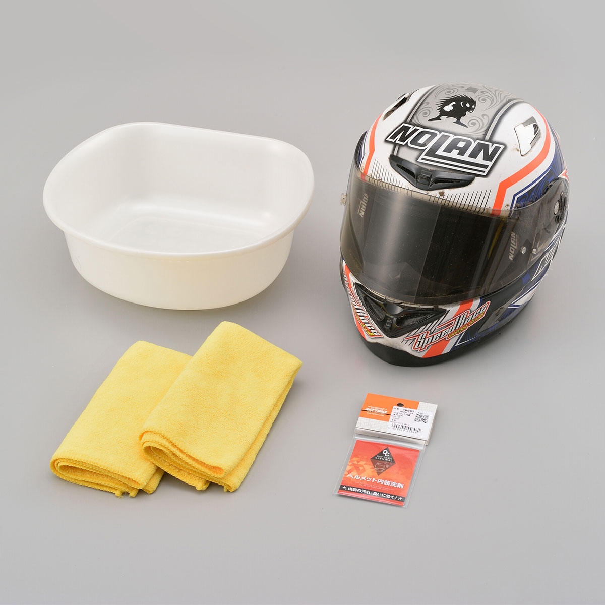 ヘルメットのにおいと汚れを強力に除去