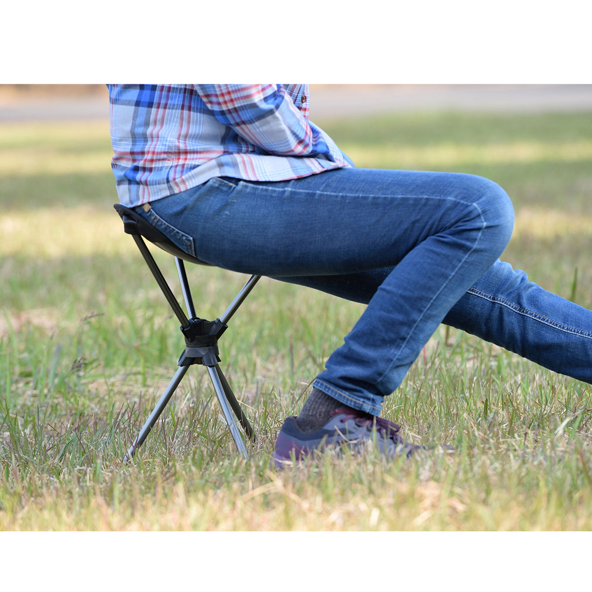 軽量コンパクトで座面が回転するから、釣りやイベントに最適。500mlペットボトルよりも軽量でバッグに難なく納まります。