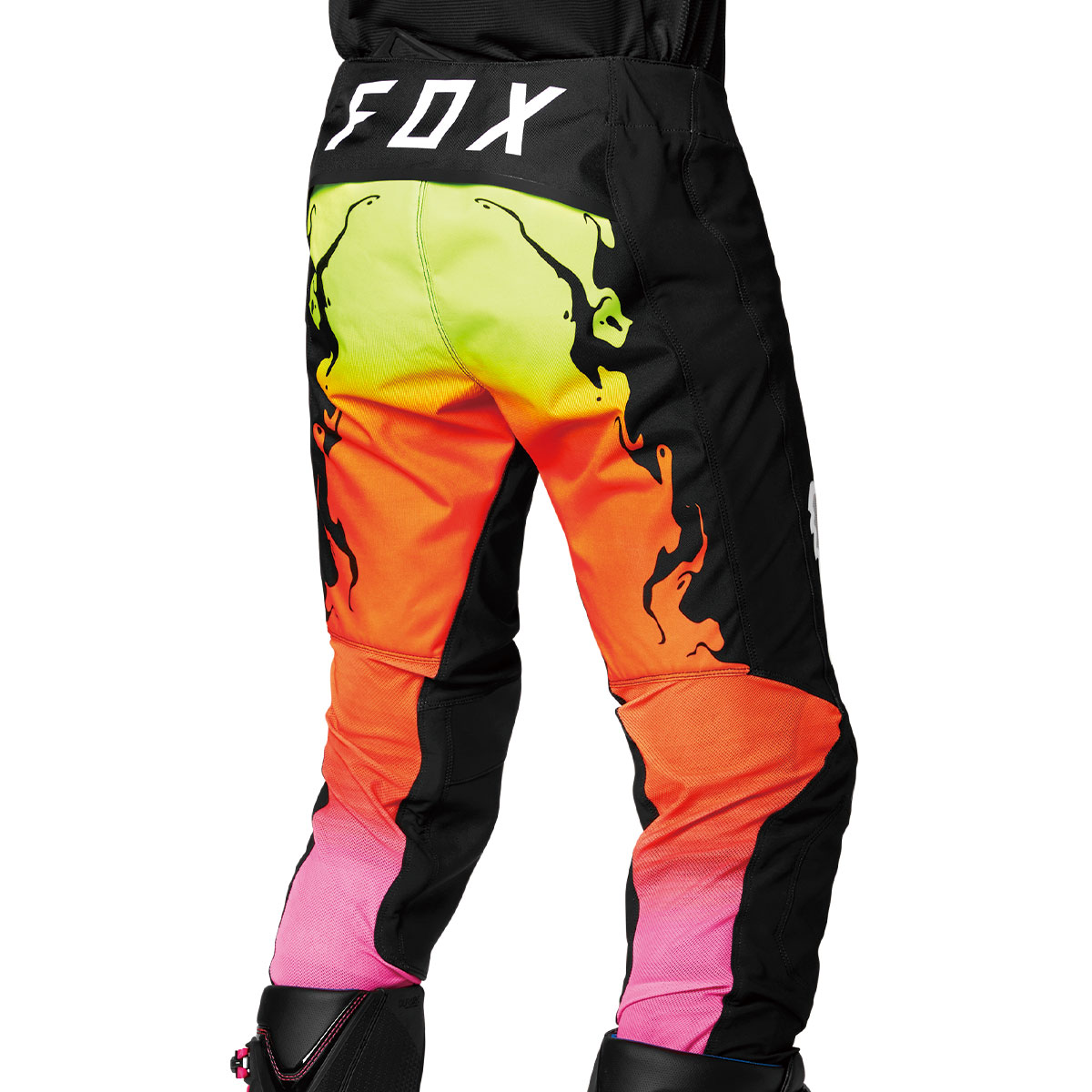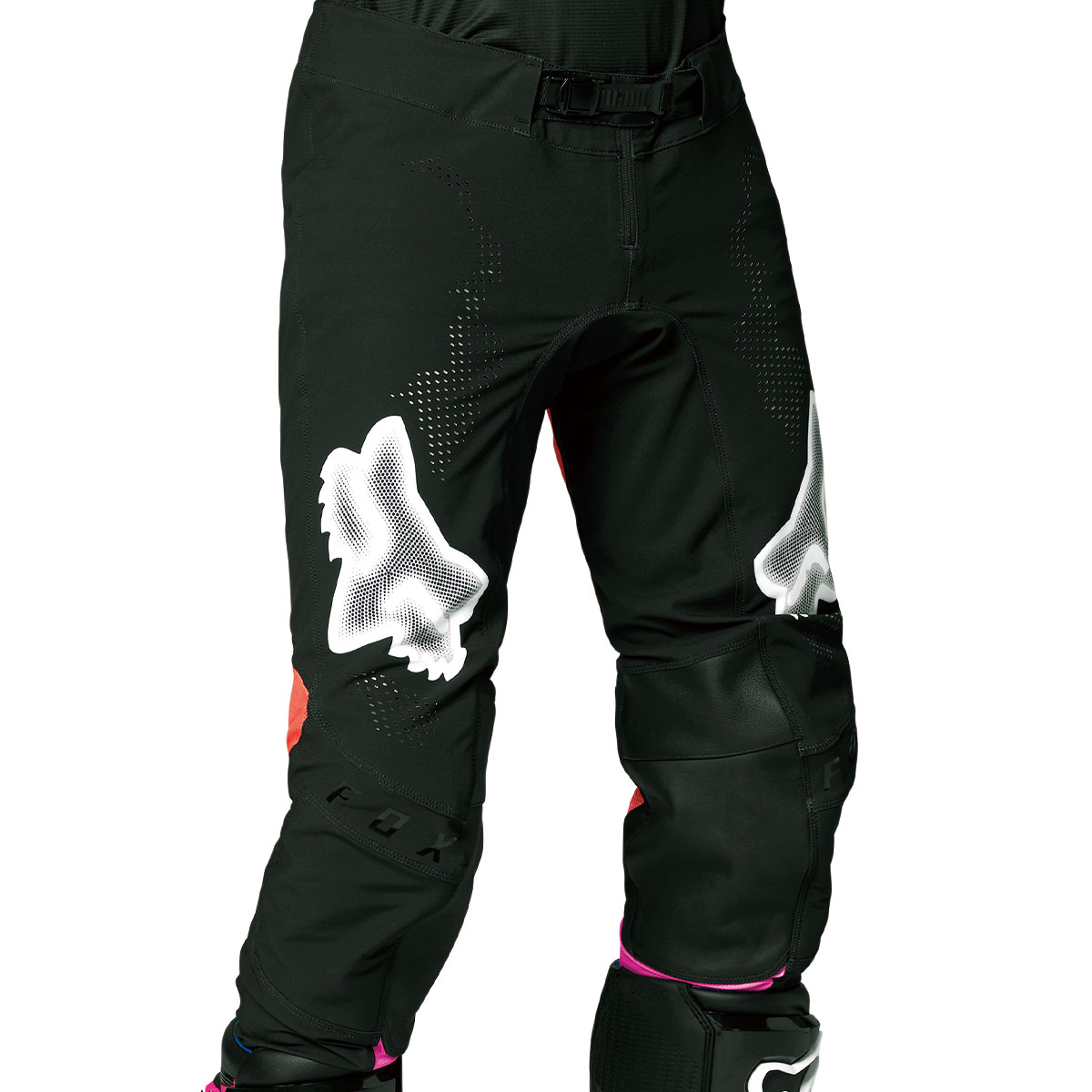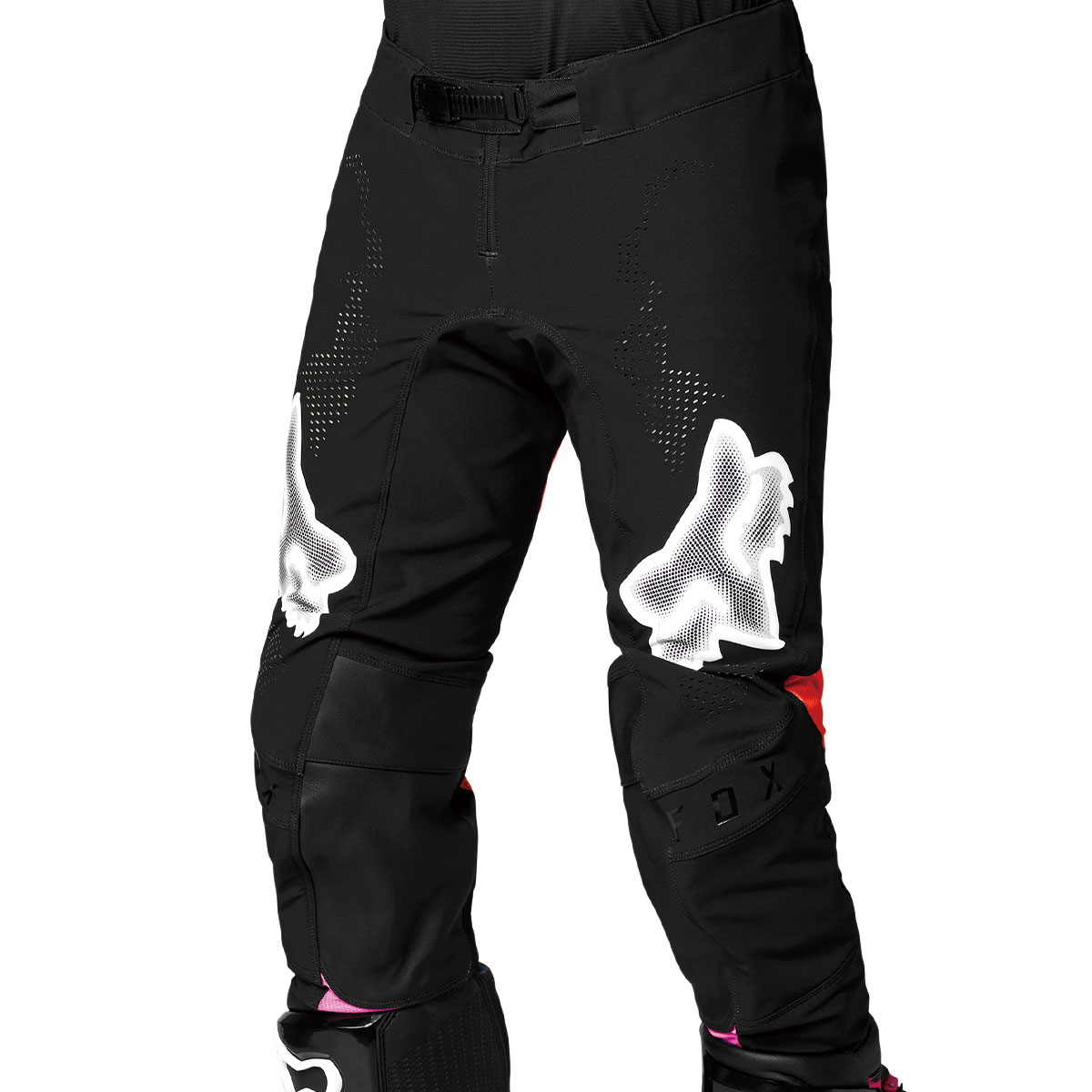 ライダーの動きに追従する柔軟で軽量な素材を使用し乗車姿勢に合わせた独自の立体裁断R.A.P(ライダーアタックポジション)により高い運動性能を発揮。4方向にストレッチしながら耐摩耗に優れたFOX独自素材TruMotionRを使用し優れた伸縮性と耐久性を両立。フルレザーを使用した2レイヤーのニーパネルにより高い耐久性を発揮。パフォーマンスを追求するライダーにふさわしい究極の性能を提供。