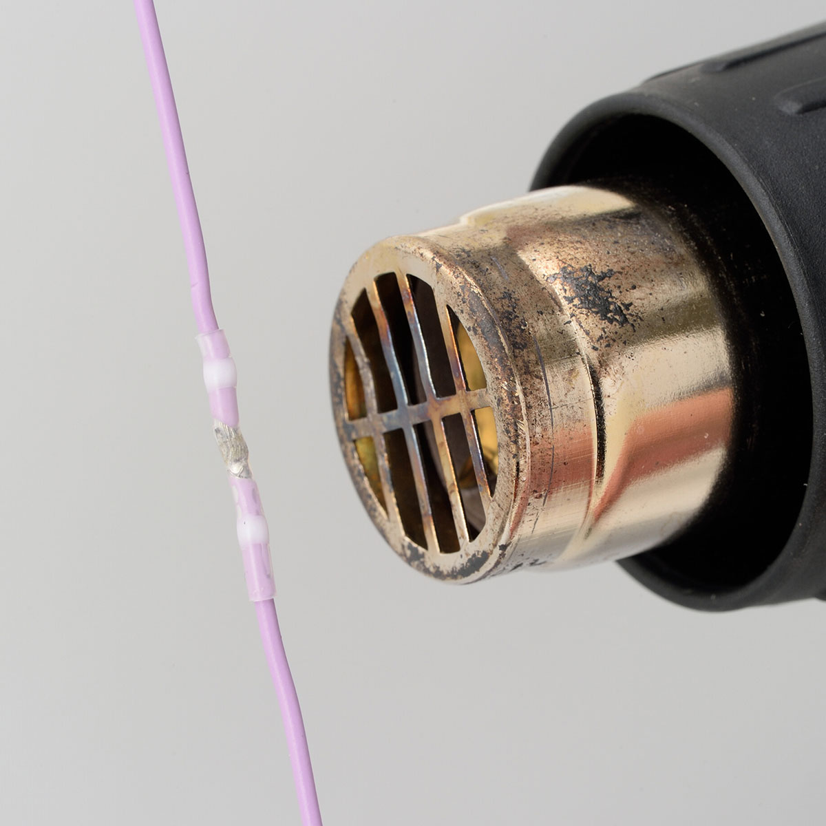 ※ご使用の際はハンダが溶けるまで加熱してください。ハンダを溶かさずチューブの収縮のみで結線すると、導通不良や抜ける等の原因となります。