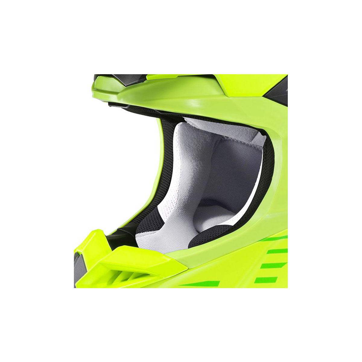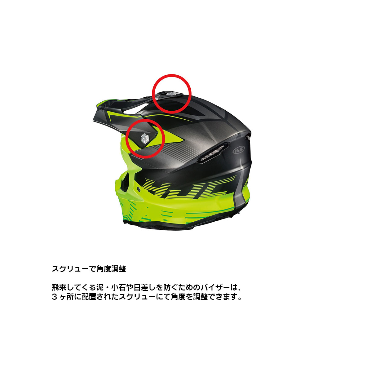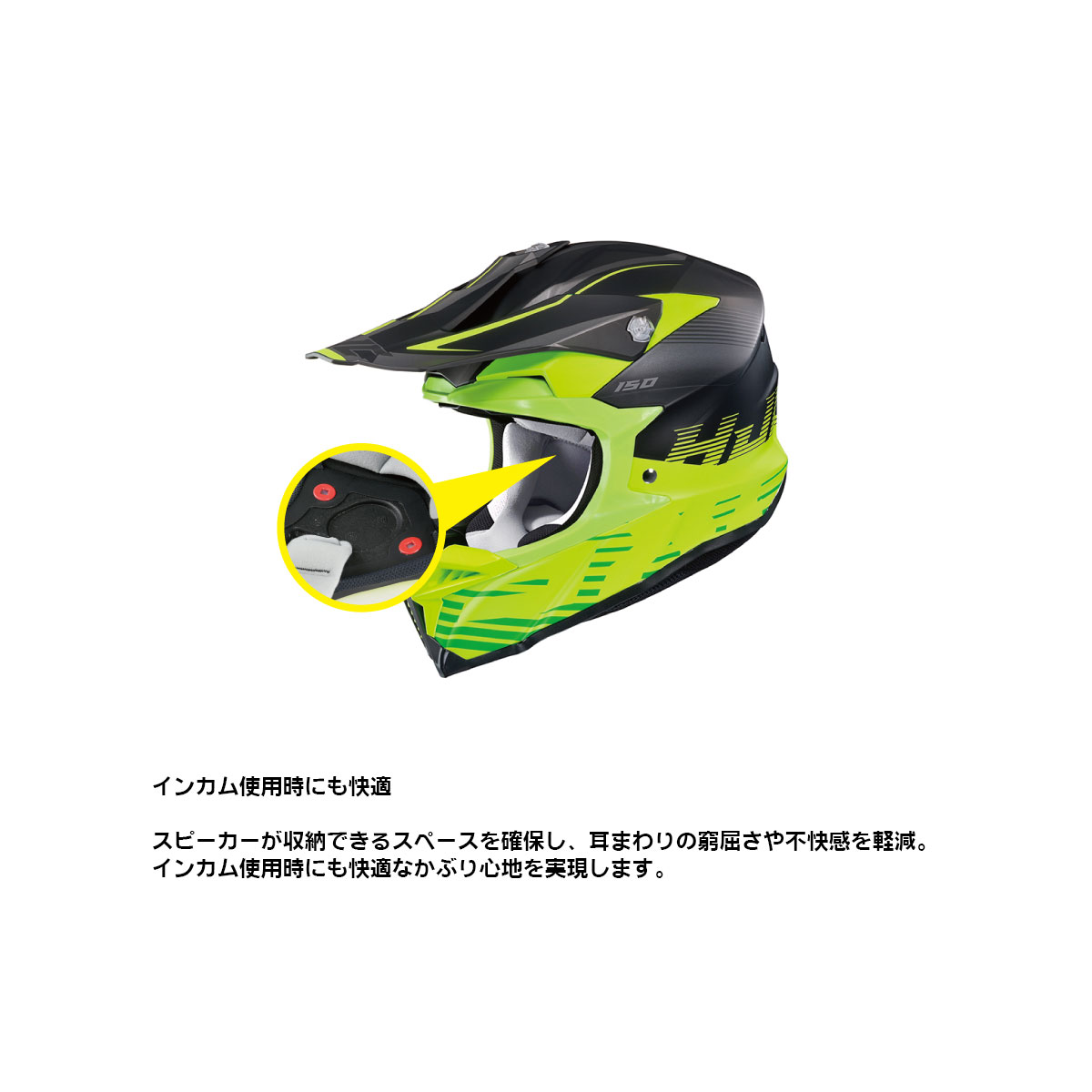 オフロード走行では、転倒が多い事に加え、様々なアクシデントが想定されます。HJCは長年の研究成果の1つとして、最新オフロードヘルメット【i50】に【SLID=Sliding Layer Impact Distribution】を採用しました。事故の際に発生する衝撃エネルギーを最小限に抑える為の重要な要素として、シェル(最も外側部分)とEPS(衝撃を吸収する発泡スチロール)があげられます。これら2つの性能の追及に加えて、さらなる安全性を目指した結果がSLIDです。実際の事故では、ヘルメットの試験で行われるような真っすぐに衝撃が加わることは少なく斜め方向から衝撃が加わる事がほとんどです。この時、頭部に回転しようとする力が加わりその力が強く・早くなるほど脳へのダメージも大きくなります。