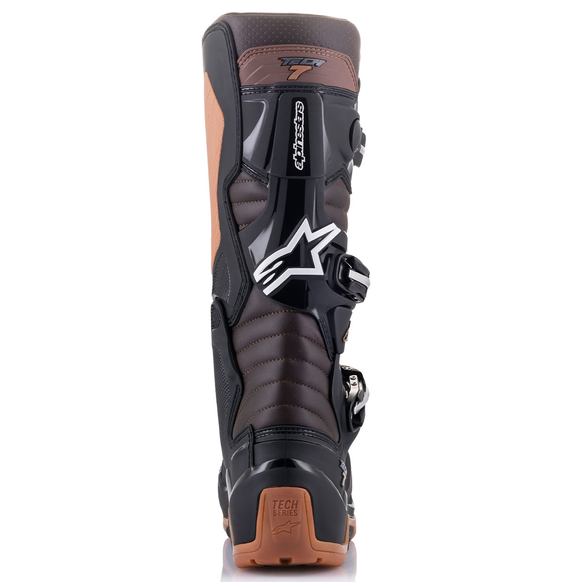 TECH7の機能性・快適性・操作性をそのまま継承したエンデューロモデル。足首のヒンジによるピボット機能はブレーキ・シフト操作を容易にし、走行中はもとよりバイクを降りて押し引きする場面でも動きやすさを実現。専用設計のパターンのソールはライディング中もバイク降車時の押し引きする場面でも理想的な操作性とグリップ性能を発揮。